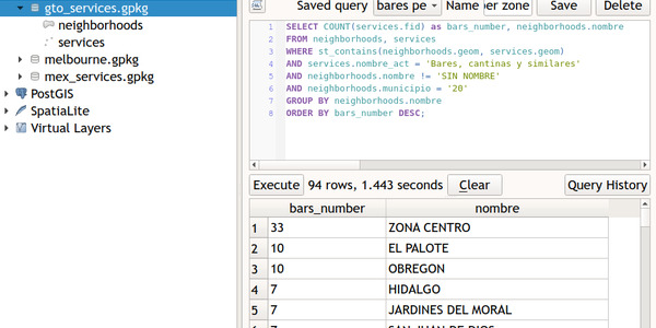 Educational guide to learning spatial SQL through GeoPackage and QGIS, covering database concepts and practical spatial queries.
